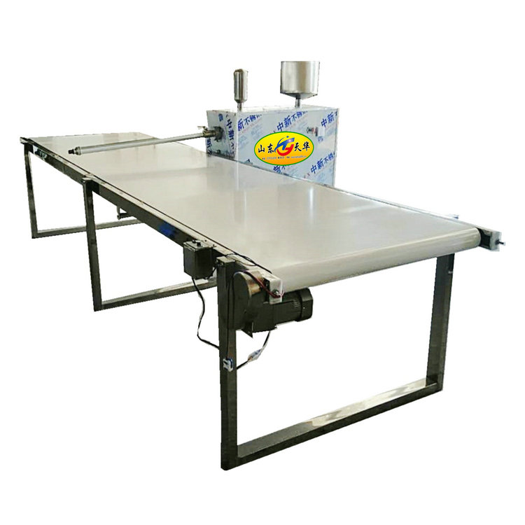 天华烫皮机结构紧凑,性能稳定,由电热水浴蒸煮箱、智能温控装置、螺旋推进装置和成型模头组成,采用电热水煮自动控温装置,采用仪表控温装置,抛弃经验控温的笨方法,操作简便,只需将米浆倒入机器,即可生产出薄筋光亮、滑溜爽口、民间风味的烫皮。天华烫皮机功能多,还可凉皮、东北大拉皮、凉粉、凉虾、米豆腐、年糕、粉条、粉丝等产品。